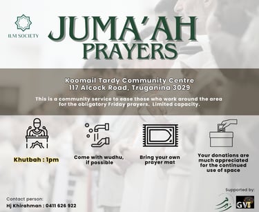 This is a community service to ease those who work around Truganina & Tarneit areas to perform the obligatory Friday prayers.