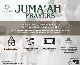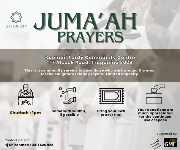 This is a community service to ease those who work around Truganina & Tarneit areas to perform the obligatory Friday prayers.